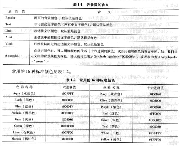 設(shè)置網(wǎng)貞的背景色彩和文字色彩可通過設(shè)置BODY標(biāo)記的屬性來實(shí)現(xiàn),具體格式如下: