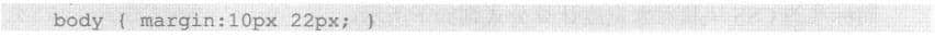 使用不帶復(fù)合屬性的margin屬性也可以為網(wǎng)頁對象設(shè)置4邊的邊界值。其方法是為margin屬性設(shè)置多個屬性值。為margin屬性設(shè)置兩個屬性值時,其第I個屬性值定義網(wǎng)頁對象頂部和底部的邊界,而第2個屬性值定義網(wǎng)頁對象左側(cè)和右側(cè)的邊界,其代碼如下所示。