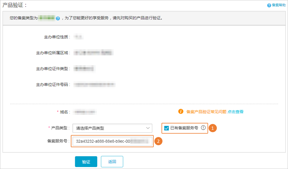 如果您的備案服務(wù)器不在當(dāng)前登錄的阿里云賬號(hào)下,您可以先申請(qǐng)好備案服務(wù)號(hào),并使用備案服務(wù)號(hào)進(jìn)行產(chǎn)品驗(yàn)證。