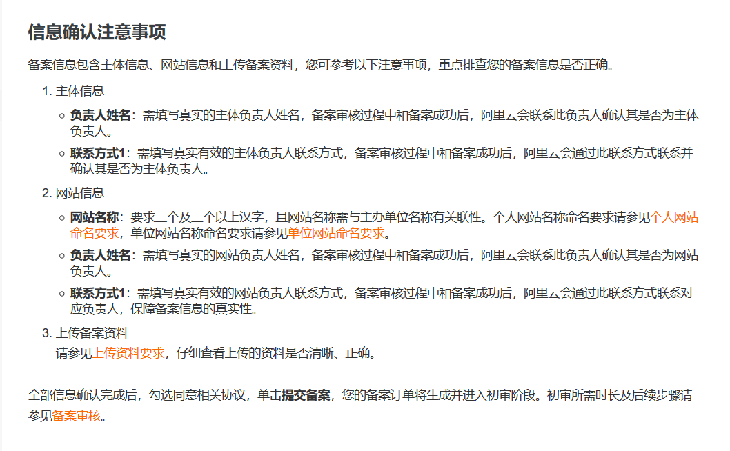 完成備案信息填寫(xiě)及資料上傳、真實(shí)性核驗(yàn)后,您需要對(duì)所有信息做最終確認(rèn),以保證信息真實(shí)準(zhǔn)確,避免備案申請(qǐng)被駁回。