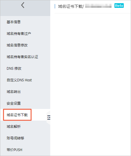 - 單擊左側導航欄中的域名證書下載。