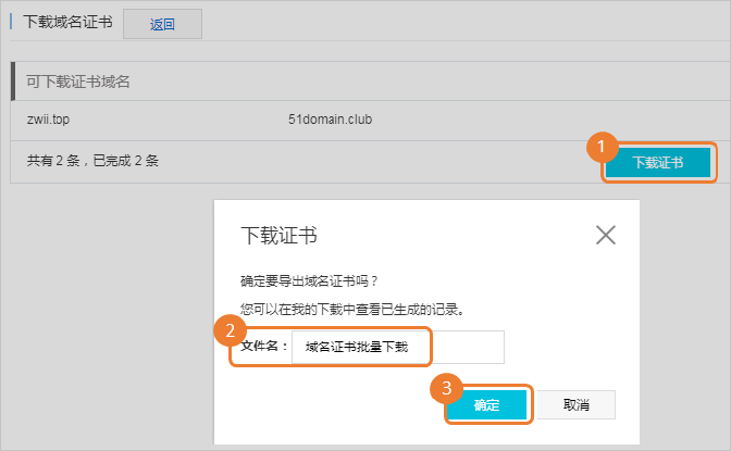 下載域名證書(批量)